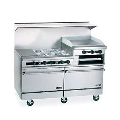 60" Gas Restaurant Range with Raised Griddle/Broiler, 6 Burners, Storage Base & Oven