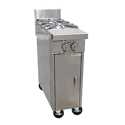 - 12" wide sectional range with two open-top burners available with a cabinet base or as a modular unit (for mounting on countertop, refrigerated or freezer base).
